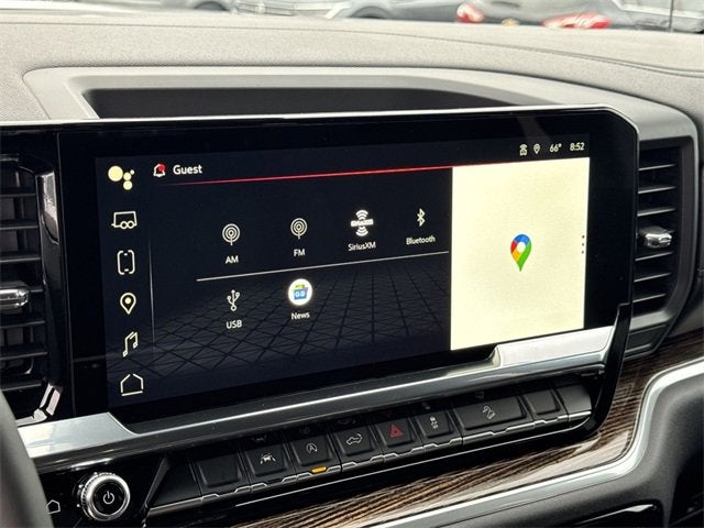 X31 OFF-ROAD AND PROTECTION PACKAGE includes (X31) Off-Road Package, (CGN) spray-on bedliner and (RIA) All-weather floor liners, LPO, ENGINE, 5.3L ECOTEC3 V8 (355 hp [265 kW] @ 5600 rpm, 383 lb-ft of torque [518 Nm] @ 4100 rpm); featuring Dynamic Fuel Management, PREFERRED PACKAGE includes (UG1) Universal Home Remote, (A48) rear sliding power window, (PZ8) Hitch View, (UET) In-Vehicle Trailering App and (KSG) Adaptive Cruise Control (Includes (B1J) rear wheelhouse liners, (UQA) Bose Premium Audio System. X31 OFF-ROAD PACKAGE includes Off-Road suspension, (JHD) Hill Descent Control, (NZZ) skid plates, (K47) heavy-duty air filter and X31 hard badge (Includes (B1J) rear wheelhouse liners. Includes (QAE) 275/60R20SL all-terrain, blackwall tires and (NQH) 2-speed transfer case. Includes (N10) dual exhaust. SEATS, FRONT BUCKET with center console (Includes (D07) center console and (K4C) Wireless charging. AUDIO SYSTEM, 13.4 DIAGONAL PREMIUM GMC INFOTAINMENT SYSTEM WITH GOOGLE BUILT IN APPS SUCH AS NAVIGATION AND VOICE ASSISTANCE, INCLUDES COLOR TOUCH-SCREEN, MULTI-TOUCH DISPLAY, AM/FM STEREO Bluetooth® streaming audio for music and most phones; featuring wireless Android Auto® and Apple CarPlay® capability for compatible phones (STD), TRANSMISSION, 10-SPEED AUTOMATIC WITH ELECTRONIC PRECISION SHIFT, ELECTRONICALLY CONTROLLED with overdrive, and tow/haul mode and steering column paddle shifters. Includes Cruise Grade Braking and Powertrain Grade Braking.